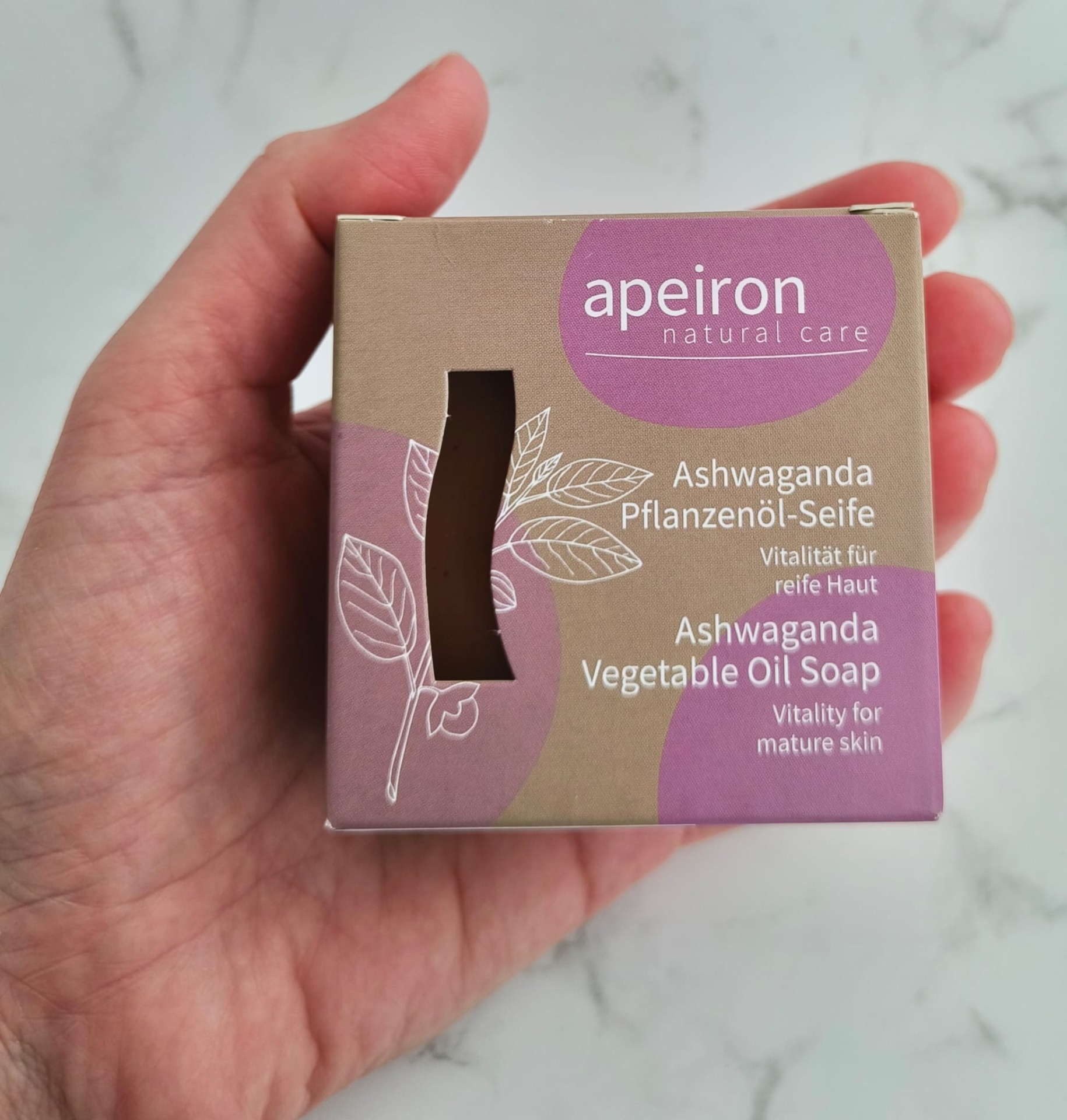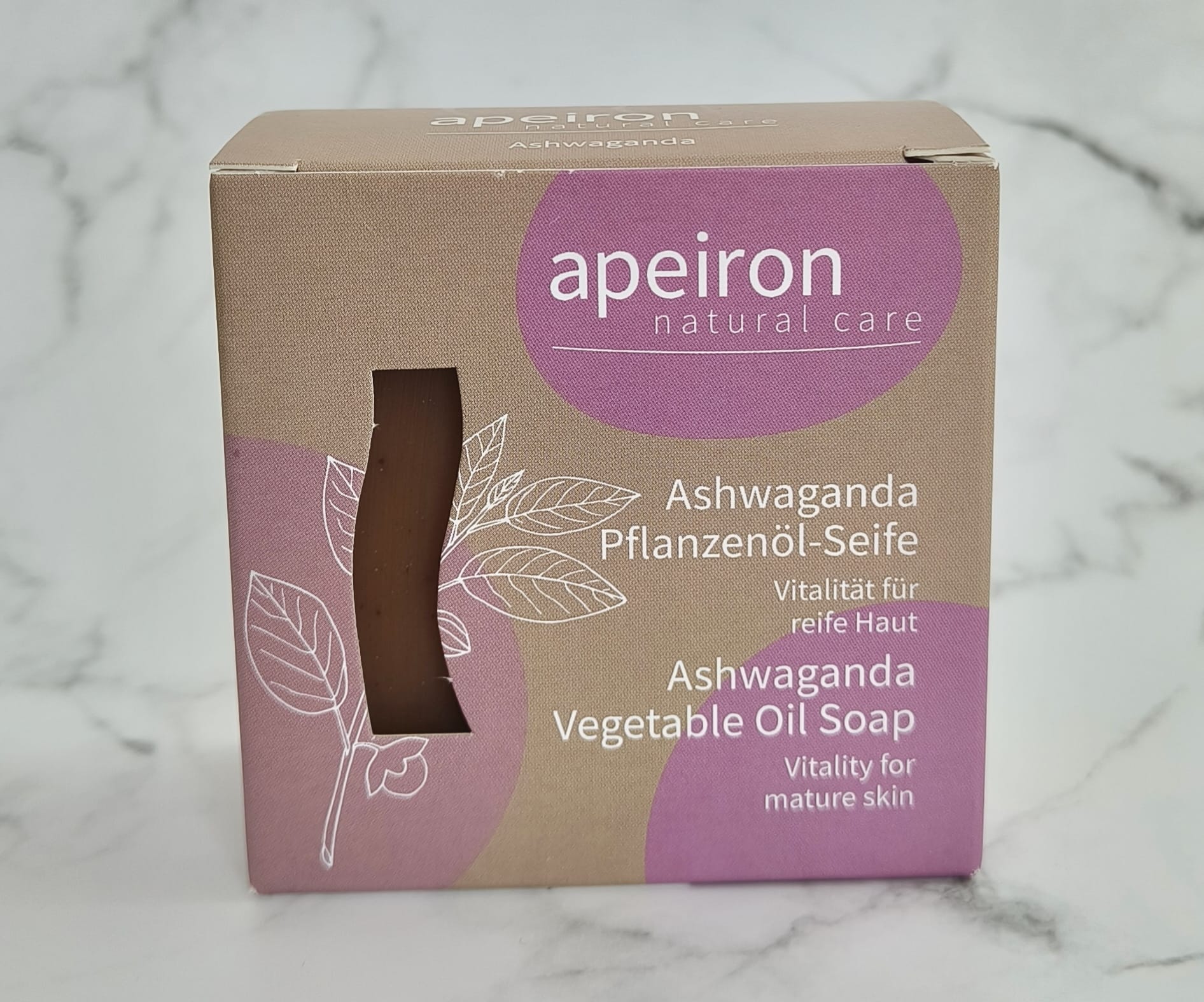 Apeiron Ashwagandha kasviöljysaippua on valmistettu perinteisten ayurvedisten reseptien pohjalta ja arvokasta yrttitietämystä hyödyntäen. Hellävaraisesti käsintehty saippua muodostaa pehmeän, hienojakoisen ja kermaisen vaahdon, joka puhdistaa ihoa hellävaraisesti ilman kuivattavaa vaikutusta.
